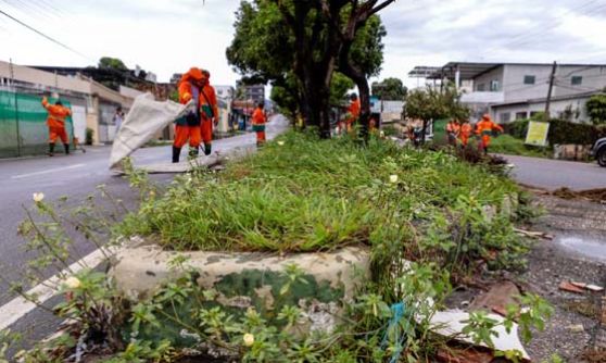 Paralelo aos serviços no bairro Cachoeirinha, a Semulsp também está com equipes na avenida Umberto Calderaro, no bairro Adrianópolis, zona Centro-Sul de Manaus, realizando serviços de podagem e capinação no canteiro central.