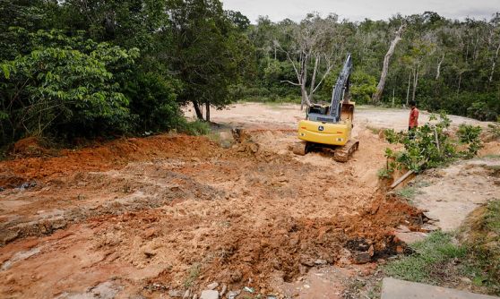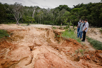 No ramal do Cuieiras, as equipes da Seminf, além da pavimentação asfáltica, trabalham na contenção de uma erosão que se formou após a grande cheia de 2021. Máquinas como tratores e retroescavadeiras fazem a contenção do talude e a terraplanagem no trecho erodido.