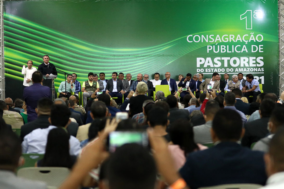O prefeito de Manaus, David Almeida (Avante), participou na manhã desta quarta-feira, 27/10, da 1ª Consagração Pública de Pastores, Bispos e Apóstolos do Estado do Amazonas, que contou com a presença do presidente da República, Jair Bolsonaro, no Centro de Convenções Vasco Vasques, no bairro Flores, zona Centro-Sul, e destacou que "eventos como esse demonstram a parceria do poder público com as igrejas e congregações presentes na capital".