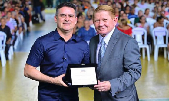 Durante a solenidade de entrega de 400 títulos de regularização fundiária, realizada na terça-feira, 10/6, na zona Leste da cidade, o prefeito de Manaus, David Almeida (Avante), foi homenageado pelo corregedor-geral de Justiça do Amazonas, desembargador José Hamilton Saraiva dos Santos, em reconhecimento às ações da prefeitura no avanço da política fundiária da capital. O titular da Secretaria Municipal de Habitação e Assuntos Fundiários (Semhaf), Jesus Alves, também recebeu a comenda.