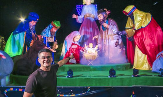 O presépio, que conta com os reis magos, Maria de Nazaré, estrela-guia, sagrada família e anjo, totaliza 19 bonecos que neste ano estão mais afinados e com nova roupagem, fazendo movimento ao redor do menino Jesus.