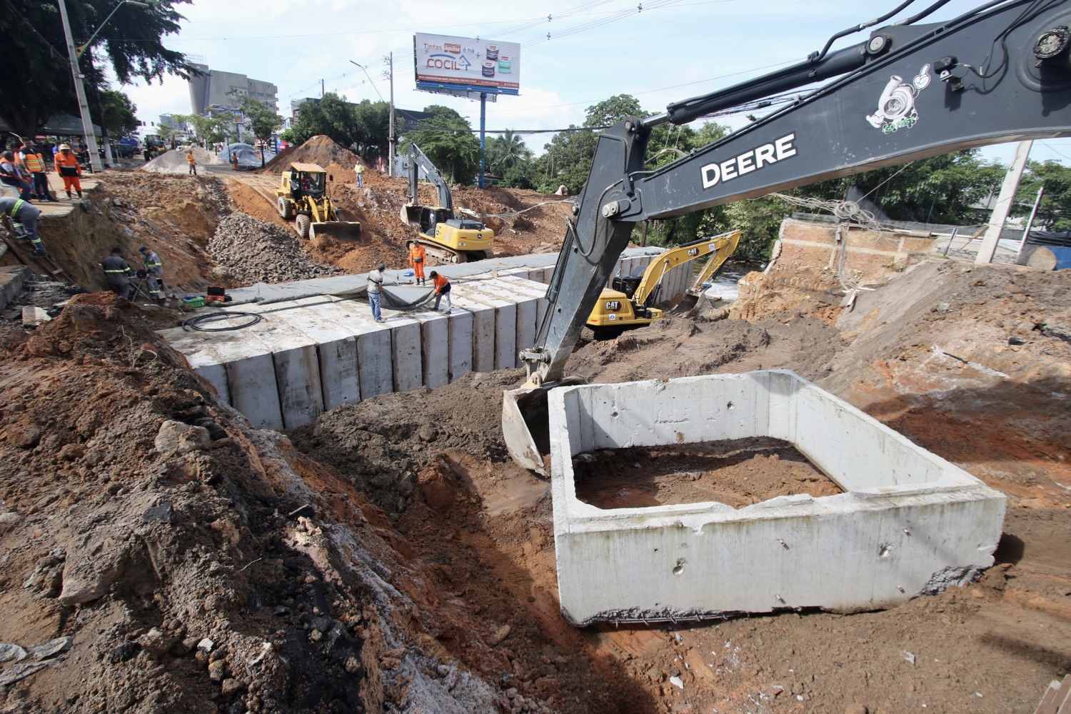 A Prefeitura de Manaus, por meio da Secretaria Municipal de Infraestrutura (Seminf), iniciou a implantação da segunda linha de tubulação com aduela de concreto no novo sistema de drenagem na avenida Djalma Batista. A intervenção ocorre, neste sábado, 18/2, completando 72 horas de trabalhos ininterruptos no local.