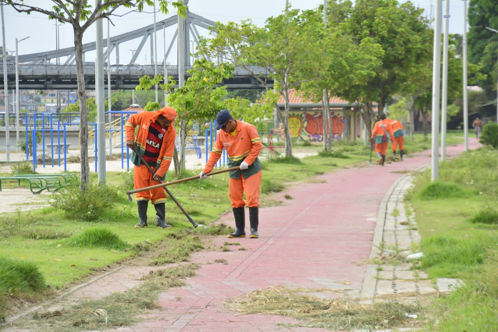 O parque Largo do Mestre Chico, gerido pelo Programa Social e Ambiental dos Igarapés de Manaus (Prosamim), na Praça 14, zona Sul de Manaus, está recebendo as equipes de limpeza pública da Prefeitura de Manaus nesta quinta-feira, 11/11. Aproximadamente 40 trabalhadores da Secretaria Municipal de Limpeza Urbana (Semulsp) levam serviços de capinação, corte, poda, jardinagem e retirada de lixo na área.
