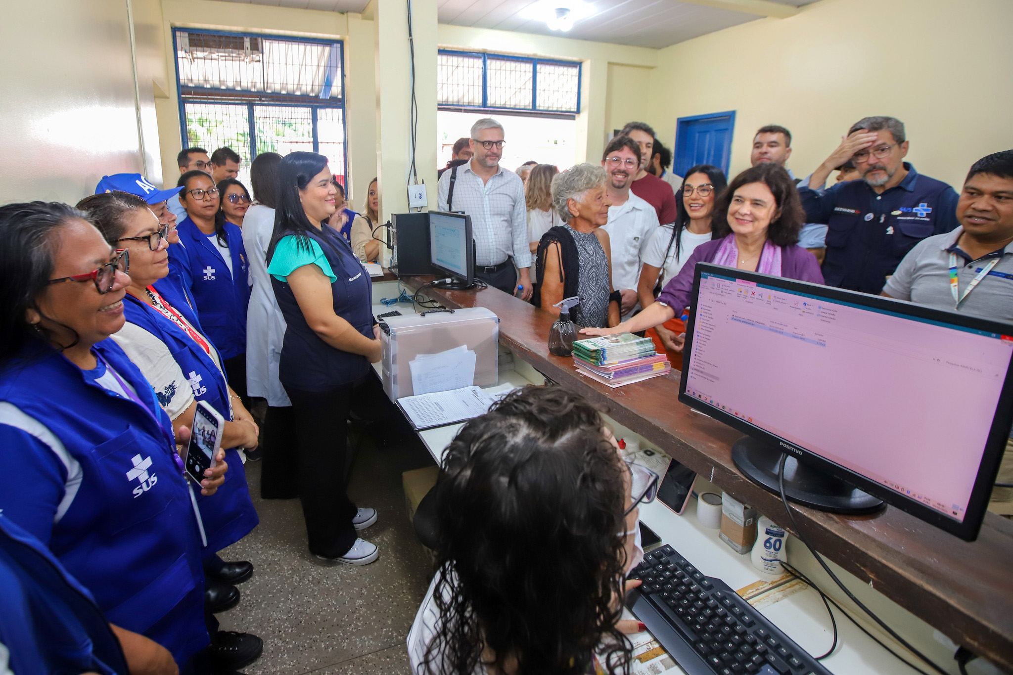 Na Unidade de Saúde da Família (USF) Nossa Senhora de Fátima, que é referência para aproximadamente 3.000 moradores de ramais, vicinais, igarapés e cinco comunidades da região do Tarumã-Mirim, a ministra conheceu os ambientes e fluxos de atendimento, com destaque para a saúde bucal e para o controle de endemias, em especial a malária.