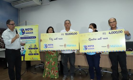 Os ganhadores do sorteio nº 2022-18, da campanha Nota Premiada Manaus, receberam seus prêmios nesta terça-feira, 7/6, em cerimônia realizada no auditório da sede do Manaus Atende, localizado na avenida Japurá, no Centro.