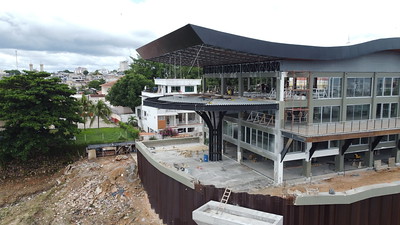 A varanda frontal do mirante segue avançando na construção e será um dos pontos mais instagramáveis no edifício com vista para o rio Negro em vários ângulos, na chamada ilha de São Vicente, no início da avenida 7 de Setembro.