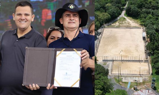 O prefeito de Manaus, David Almeida, e o titular da Secretaria Municipal de Infraestrutura (Seminf), Renato Junior, assinaram, nesta terça-feira, 14/05, a ordem de serviço para a reforma do campo de areia e da quadra no Núcleo 16, do bairro Cidade Nova, zona Norte.