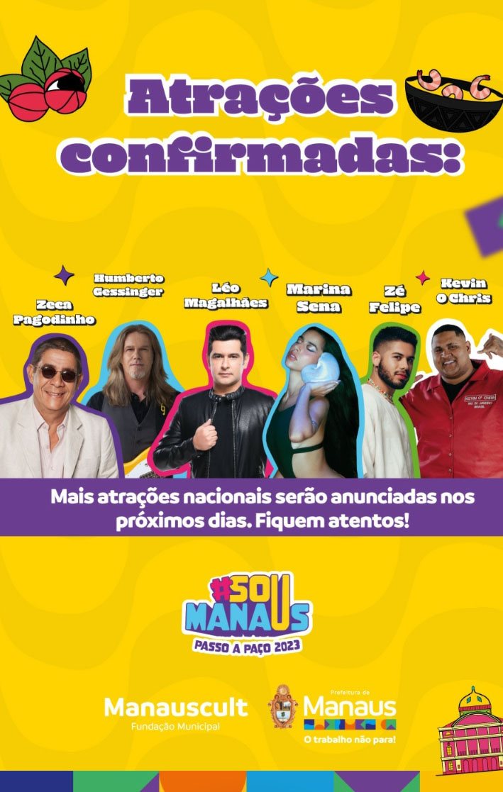 Para a edição deste ano, a Prefeitura de Manaus já confirmou as atrações nacionais: Zeca Pagodinho, Zé Felipe, Kevin o Chris, Marina Sena, Léo Magalhães e Humberto Gessinger, fundador da banda Engenheiros do Hawaii. Mais atrações nacionais serão anunciadas nos próximos dias. O evento é gratuito e tem como mote a sustentabilidade, ancestralidade e inovação tecnológica.