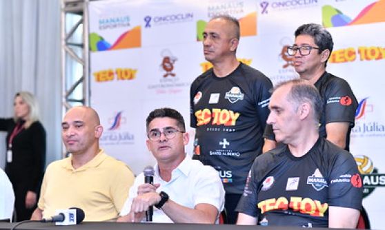 O prefeito de Manaus, David Almeida, participou, ao lado do diretor-presidente da Fundação Manaus Esporte (FME), Aurilex Moreira, na tarde da quarta-feira, 18/1, da apresentação dos jogadores do Manaus Vôlei/TecToy, equipe que irá representar o Amazonas na Série B da Superliga de Vôlei Masculino, principal competição da modalidade no Brasil. A disputa começa neste sábado, 21/1, e garante aos dois primeiros colocados o acesso para a Superliga A.