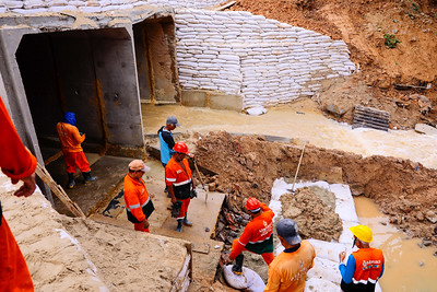 Após a conclusão do trabalho de troca de uma tubulação de aço por duas galerias de concreto - medindo 3 x 3 metros -, para dar vazão às águas de um igarapé que corta a avenida Djalma Batista, na entrada do Eldorado, os trabalhos seguem agora para a etapa de confecção de drenagem superficial, com a implantação de meio-fio, calçada e sarjeta.
