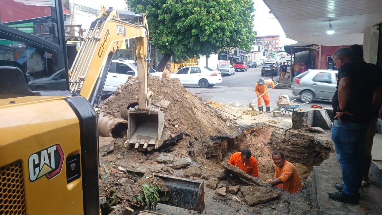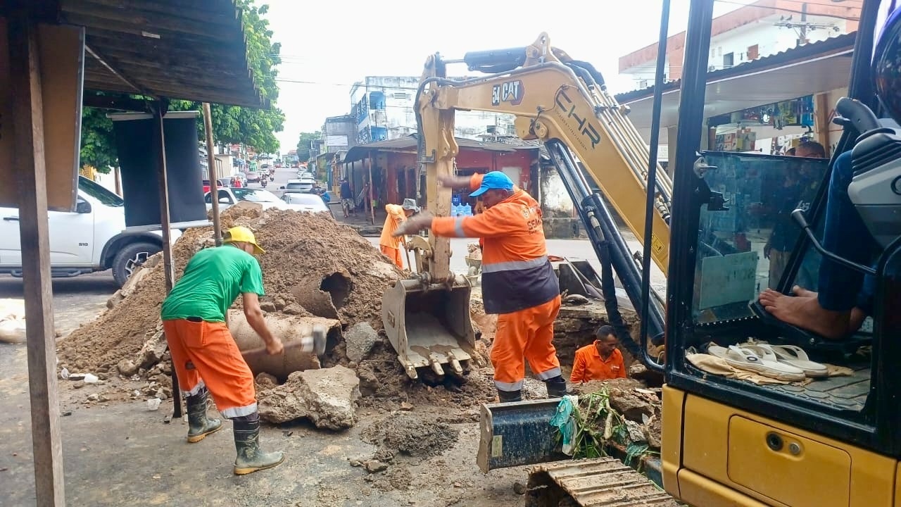 A Prefeitura de Manaus, por meio da Secretaria Municipal de Infraestrutura (Seminf), executa, neste sábado, 18/4, a substituição de 50 metros da rede de drenagem profunda na rua São Jerônimo, no bairro Betânia, zona Sul da capital. A via concentra intenso fluxo de veículos e pedestres, por abrigar a feira do bairro e diversos estabelecimentos comerciais.