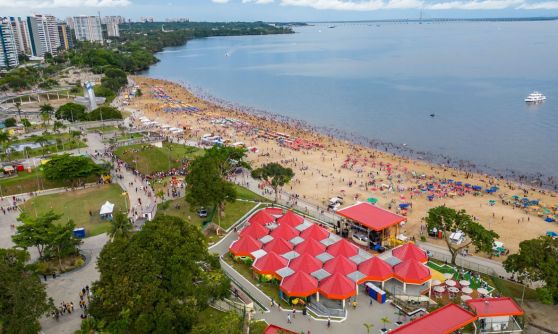 Além da estrutura para shows, a casa de praia também oferece serviços gastronômicos com vários restaurantes de sabor amazônico, playground para crianças e espaço para toda a família curtir a cultura local.