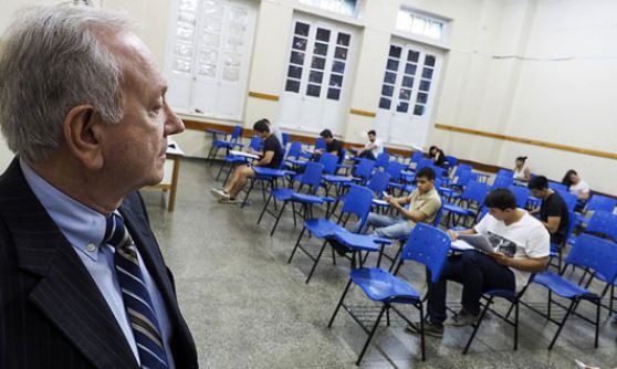 O desembargador João de Jesus Abdala Simões, coordenador da Escola de Aperfeiçoamento do Servidor, visitou os três locais de provas neste domingo e conversou com candidatos.