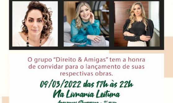As advogadas Graziella Alecrim, Josana Mundstock e Sálvia Haddad estarão reunidas das 17 às 22 horas da quarta-feira, 09, na Livraria Leitura do Amazonas Shopping, para o lançamento de suas obras jurídicas.