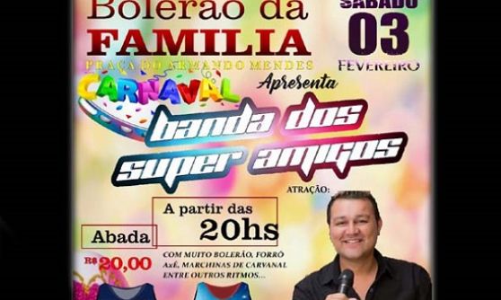 A banda dos Super Amigos promove neste sábado, dia 03 de fevereiro, um “esquenta” para o Carnaval de 2018 e promete agitar o bairro Armando Mendes, a partir das 19 horas, com muita animação na praça central do bairro.
