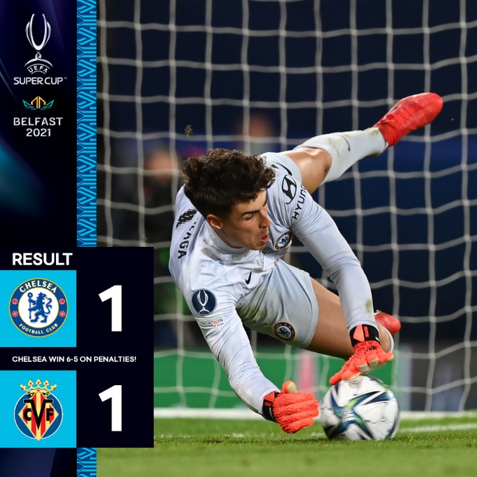 O Chelsea (Inglaterra) conquistou nesta quarta-feira (11) o título da Supercopa da Europa ao derrotar o Villarreal (Espanha) por 6 a 5 na disputa de pênaltis, após empate em 1 a 1 no tempo regulamentar, em partida disputada no Windsor Park, em Belfast (Irlanda do Norte).