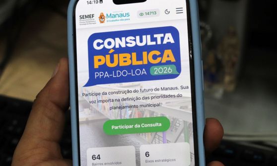Com o objetivo de ampliar ainda mais a participação social no planejamento das políticas públicas na capital, a Prefeitura de Manaus, por meio da Secretaria Municipal de Finanças, Planejamento e Tecnologia da Informação (Semef), informa que o prazo da Consulta Pública On-line 2026 foi prorrogado até o dia 27/3. A ampliação do período garante mais tempo e oportunidade para que a população contribua diretamente na definição das prioridades para aplicação dos recursos públicos do município.